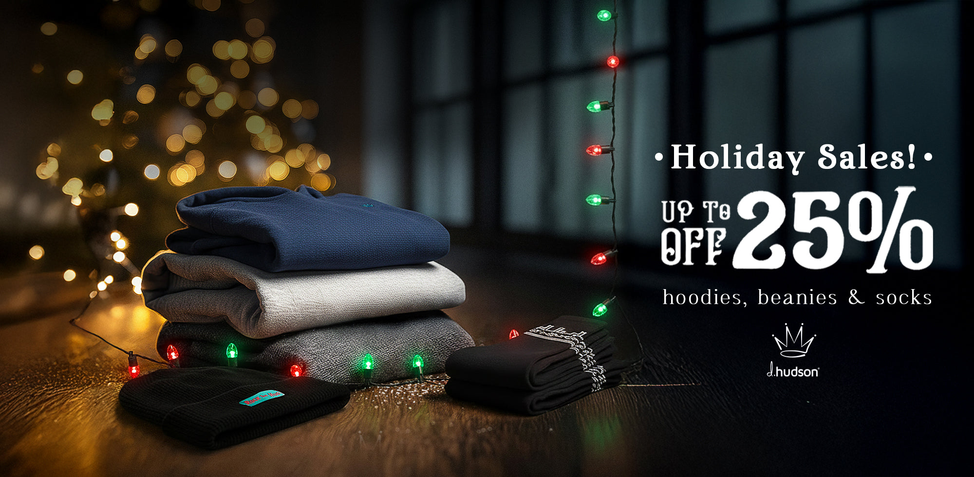 Holiday Sales: 25% OFF hoodies, socks, and beanies — discount automatically applied at checkout.